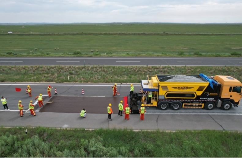 開普封層技術(shù)是先做一層碎石封層,再做一層或者多層稀漿封層(或微表處)的一種預(yù)防性養(yǎng)護(hù)性方案。碎石封層應(yīng)用在稀漿封層/微表處之前,可以使其更加固化。采用熱瀝青、橡膠瀝青、改性乳化瀝青或改性瀝青等作為粘結(jié)材料,對原有路面的裂縫起到了很好的填充作用,增加了底層路面的含油量。在很大程度上降低了表層稀漿封層(或微表處)的開裂,抑制了裂縫的反射,起到很好的封水效果,延長了道路使用年限,是一種有效的預(yù)防性養(yǎng)護(hù)方案。